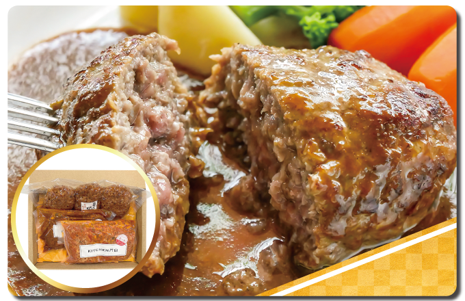 3個入ハンバーグ、2個入煮込みハンバーグ(ミートソース・デミグラスソース)×各1袋入